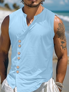 Miesten Paita Pellava paita Kesä paita Rantapaita Vintage paita Hihaton paita Tavallinen Loma Pyhäpäivä Musta Valkoinen Sininen Khaki Hihaton Pystykaulus Kesä Kevät Vaatetus Napit