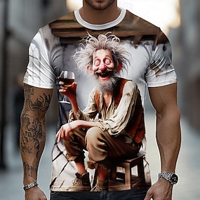 miesten hauska hullu vanha mies viinilasi kädessään oikukas hahmo uutuus huumori 3D-animaatiotyylinen t-paita kauttaaltaan printti rento lyhythihainen juhlapub-vaatteet suunnittelija vaatteet s m l xl
