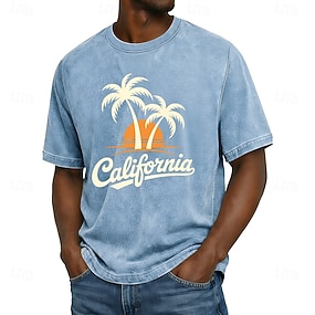 miesten kalifornialainen palmu auringonlasku vintage retro surf acid wash t-paita graafinen lyhythihainen rantaloma kesä suunnittelija vaatteet s m l xl xxl xxxl