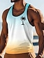 Miesten Kookospalmu T-paita Liivin toppi Hihaton T-paita 3D-tulostus Tiukka pyöreä kaula-aukko Paita Loma Kausaliteetti Havaijilainen Pyhäpäivä Valkoinen Kesä Kevät Vaatetus S M L XL XXL XXXL