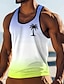 Miesten palmukuvioinen minimalistinen trooppinen Havaijin rantakuvioinen ombre-kuvioinen liukuvärjäys sininen valkoinen keltainen toppi hihaton paita U-kaula-aukkoinen kesä rantaloma surffaus loma