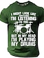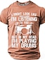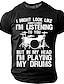 miesten "päässäni soitan rumpujani" hauska rumpali graafinen t-paita perkussionisti vitsi lainaus t-paita muusikko lahja bändi harjoitusvarusteet kulunut tyyli rento lyhythihainen vaatetus s-3xl