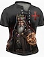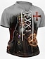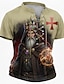 miesten temppeliherrain ritarien ristiretkeläisen keskiaikainen retro t-paita, kokonaispainatus, nyöritettävä, v-aukkoinen, ristikkäinen, lyhythihainen paita, rento katumuoti, suunnittelijavaatteet, s