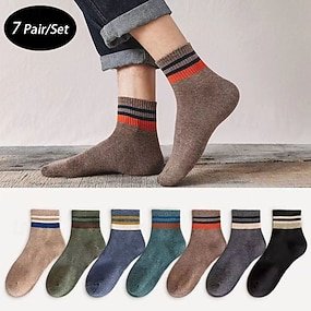 Miesten 7 paria Sukat Juoksusukat Vapaa-ajan sukat Sininen Musta Väri Raidoitettu ulko- Loma Arki-asut Keskipaksu Kevät Syksy Muoti Katutyyli