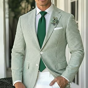 Miesten Bleiseri Takki Notch Kaulus Pyhä Patrickin päivä Raidallinen Seersucker Bleiseri Vaaleanpunainen Taivaan Sininen Salvia Mukautettu Leikkaus Yhden napin