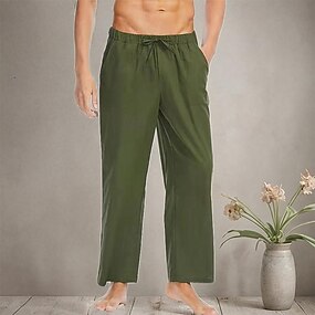 Miesten Pellavahousut Housut Kesähousut Roikkuvat housut Rantahousut Kurenauha Joustava vyötärö Suora jalka Tavallinen Mukavuus Hengittävä Täyspitkä Kausaliteetti Päivittäin ulko- Muoti Klassinen