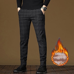 Miesten Housut Kiinalainen Lyijykynähousut Ruudulliset mekkohousut Pukuhousut Tasku Hight Rise Ruutukuvio Hengittävä Pehmeä liiketoiminta Kausaliteetti Päivittäin Vintage Tyylikäs Musta Harmaa
