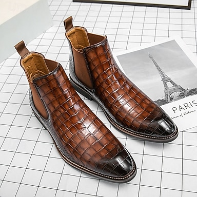 Miesten ruskeat krokotiilikuvioiset keinonahkaiset slip-on-saappaat - tyylikkäät muodolliset jalkineet työ- ja juhlatilaisuuksiin