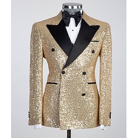 Miesten Blazer-takki Smokki Suljettava kaulus Juhla Kimaltava Paljetti Yhtenäinen Musta Hopea Samppanja Räätälöity istuvuus Kaksiriviset kuusinapit