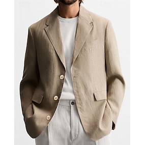 Miesten Valmistujaiset Bleiseri liiketoiminta Cocktailjuhla Hääjuhla Muoti Vapaa-aika Kevät Syksy Pellava Yhtenäinen väri Tasku Napit Mukava Yksirivinen Bleiseri Musta Ruskea khaki Armeijan vihreä