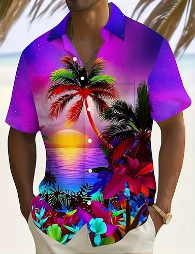 Miesten Kookospuu Luonto ja maisemat Trooppiset kasvit Havaiji paita Button Up paita Havaijilaispaita Lyhythihainen Havaijilainen Loma Kesä Kevät Sänkyjen avaus 3D-tulostus kauluspaidat Edessä yksi