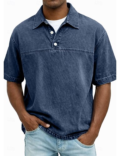 Miesten Farkkupaita Puuvillainen poolopaita Kausaliteetti Classic Lyhythihainen Muoti Perus Yhtenäinen väri Vintage-tyyli Napit Kesä Kevät 봄 & Syksy Normaali Musta Vaalean vihreä Punastuvan