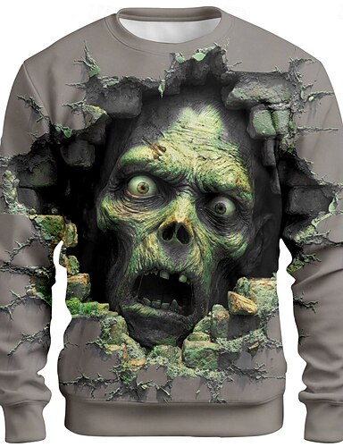 Miesten Zombeja 3D College Punk Juhla Goottityyli Pitkähihainen Tiukka pyöreä kaula-aukko Loma Vaalean vihreä Apila Harmaa Crewneck 3D Kaikki vuodenajat Suunnittelija S M L XL XXL XXXL