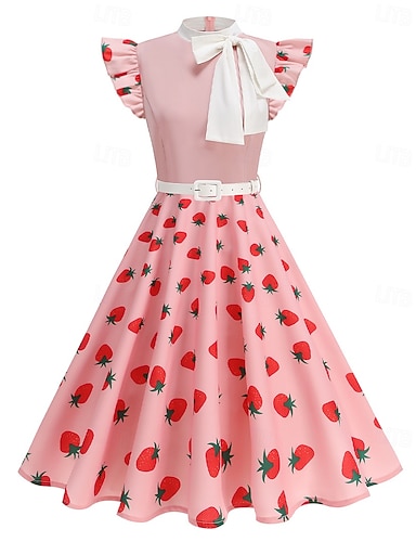 1950-luku Hepburn Retro / vintage Keskipäivä A-Line-mekko Swing -mekko Kukkainen mekko Lyhyet hihat A-linja Naamiaispuku Naisten Karnevaali Ystävänpäivä Naamiaiset Loma Arkikäyttö Tyttöjen polttarit