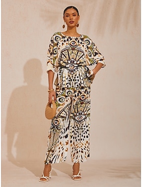 boheemi paisley-kuvioinen silkkinen satiinitoppi dolman-hihoilla