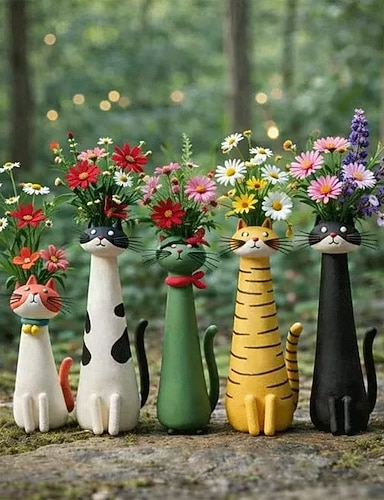 käsintehty omituinen kissanmuotoinen maljakko hartsipuutarhakoriste, söpö kissanistutusruukku mehikasveille, sisä- ja ulkopuutarhaterassi nurmikko parveke kodinsisustus