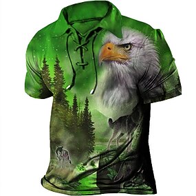 Miesten Puu Graafiset tulosteet Kotka Poolopaita Golfpaita Lyhythihainen Paita Sänkyjen avaus ulko- Katu Vaalean vihreä Rubiini Sininen Purppura Apila Kurenauha Painettu Vaatetus Urheilu Muoti