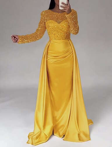 Trumpetti / merenneito Tuubi Iltapuku Tyylikäs Muodollinen mekko Muodollinen Häät Kokopitkä 3/4 hiha V kaula-aukko Satiini V Takaisin kanssa Röyhelöity 2025