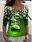 Naisten T-paita Kuvitettu Paisley-kuvio Tribaali Vintage Tyylikäs Klassinen Pitkähihainen V kaula-aukko Epäsymmetrinen kaula Tavalliset topit Päivittäin Napit Painettu Epäsymmetrinen salvain vihre
