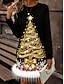 Christmas Naisten Pusero Lumihiutale Viinilasi Tyylikäs Vapaa-aika Pitkähihainen Olkaimeton Tavalliset topit Päivittäin Pyhäpäivä Feather Painettu Musta Valkoinen Viini Apila Kevät Syksy Talvi
