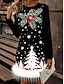 Christmas Naisten Pusero Joulukuusi Tyylikäs Vapaa-aika Pitkähihainen Olkaimeton Tavalliset topit Päivittäin Feather Painettu Musta Laivaston sininen Sininen Purppura Kevät Syksy Talvi
