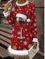 Joulu Naisten Joulukuusi Lumihiutale Mini Mekko A-linjainen Mekko Loma Juhlat Rento Juhlat Päivittäin Treffit Tavanomainen Istuvuus Graafinen Pukki Pitkät Hihat V-kaula Valkoinen Punainen Talvi