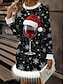 Naisten Mini mekko Joulupuku Rento mekko Talvi mekko Kotelomekko Muoti Joulu ulko- Loma Normaali Kuvitettu Lumihiutale Pitkähihainen Tiukka pyöreä kaula-aukko Musta Viini Rubiini Kevät Syksy Talvi