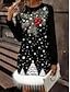 Naisten Mini mekko Joulupuku Rento mekko Talvi mekko Kotelomekko Muoti Joulu ulko- Loma Normaali Kuvitettu Lumihiutale Pitkähihainen Tiukka pyöreä kaula-aukko Musta Kevät Syksy Talvi