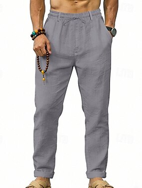 Miesten Pellavahousut Housut Kesähousut Roikkuvat housut Rantahousut Kurenauha Joustava vyötärö Suora jalka Tavallinen Mukavuus Hengittävä Täyspitkä Päivittäin Pyhäpäivä Bile Muoti Klassinen tyyli
