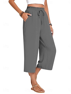 Naisten Caprihousut Keinopuuvillainen pellava Housut Kesähousut Loma Perus Vasikka-Length Korka vyötärö Tavallinen Kurenauha Tasku Elastinen vyötärönauha Mukavuus Pehmeä Hengittävä Elastinen