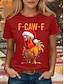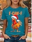 Christmas Naisten T-paita Kuvitettu Kukko Joulu Vintage Tyylikäs Klassinen Lyhythihainen Tiukka pyöreä kaula-aukko Tavalliset topit Päivittäin Painettu Musta Rubiini Sininen Apila Kevät, Syksy