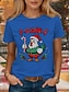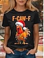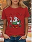 Christmas Naisten T-paita Kuvitettu Kukko Joulu Vintage Tyylikäs Klassinen Lyhythihainen Tiukka pyöreä kaula-aukko Tavalliset topit Päivittäin Painettu Musta Valkoinen Rubiini Sininen Syksy Talvi