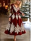 Joulu Naisten Midi Mekko A-linjainen Mekko Fit And Flare Mekko Loma Rentoa Boho Juhlat Päivittäin Ulkona Normaalisti Istuvuus Grafiikka Pitkä Hiha Pyöreä Kaula Punainen Kesä Kevät Syksy Talvi