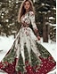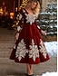 Uuden vuoden naisten midi-mekko A-linjan mekko talvimekko keinutuskankaat puoliformaali mekko muoti katumuoti moderni muodollinen ulkoilu juhlat säännöllinen istuvuus kukka lumiukko 3/4 pituinen hiha