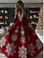 Joulun naisten maxi-mekko A-linjainen mekko loma rento juhla päivittäin iltajuhla tavanomainen istuvuus graafinen pitkähihainen V-kaula-aukko tummaviininpunainen kevät syksy talvi
