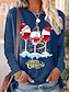 Christmas Naisten T-paita Joulupukki Poro Lumihiutale Vintage Tyylikäs Klassinen Pitkähihainen Tiukka pyöreä kaula-aukko Pyöreä kaula-aukko Tavalliset topit Viikonloppu Painettu Sininen salvain