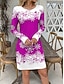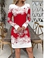 Joulun naisten minimekko T-paitamekko tee-mekko shift-mekko loma rento loma normaali istuvuus graafinen pitkähihainen crew neck valkoinen viini punainen syksy talvi