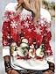 Christmas Naisten Pusero Kuvitettu Lumihiutale Vintage Trooppinen Tyylikäs 3/4 hiha Tiukka pyöreä kaula-aukko Venekaula-aukko Tavalliset topit Päivittäin Pyhäpäivä Painettu Rubiini Kevät Syksy Talvi