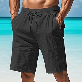 Miesten Puuvillaiset pellavashortsit Tasku Kurenauha Joustava vyötärö Tavallinen Mukavuus Hengittävä Lyhyt Loma Musta Valkoinen