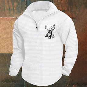 Miesten College Vohveli collegepaita Quarter vetoketjullinen collegepaita Musta Tumman harmaa Puolivetoketju Poro Painettu Joulu Päivittäin Pyhäpäivä Polyesteri Katutyyli Vapaa-aika 봄 & Syksy Vaatetus