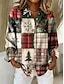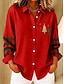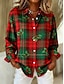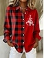 Christmas Naisten Pusero Kuvitettu Skottiruutukuvio Puu Vintage Trooppinen Tyylikäs Pitkähihainen Paitapuserokaula-aukko Tavalliset topit Työ Päivittäin Bile Tilkkutäkki Napit Painettu Viini Armeijan