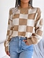 Naisten Neulos Tyylikäs Muoti Katutyyli Kuvitettu Geometrinen Skottiruutukuvio V kaula-aukko Kudottu Pitkähihainen Tavalliset topit Neuloa Viikonloppu Punastuvan vaaleanpunainen Vaalean ruskea Kevät