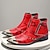 Miesten punamustat käärmekuvioiset nilkkurit metalliosilla – muodikas ja rohkea muotoilu joulujuhliin ja juhlaviin tilaisuuksiin