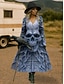 Naisten maxi mekko rento mekko T-paitamekko tee mekko kukkatribaltaskuprintti V-kaula-aukko pitkä mekko maxi mekko vintage etninen treffi loma pitkät hihat syksy talvi