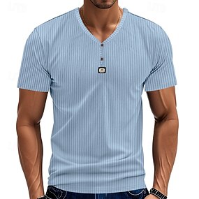 Miesten T-paita Henley-paita T-paidat Lyhythihainen paita Lyhythihainen V kaula-aukko Kesä Tavallinen Muoti Suunnittelija Perus Jakardi Loma Katu Bile Musta Valkoinen Khaki Top T-paita miehille
