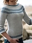 Naisten Neulos Pusero Loma Vintage Päivittäin Geometrinen Joustin Tiukka pyöreä kaula-aukko Kudottu Painettu Pitkähihainen Tavalliset topit Neuloa ulko- Viikonloppu Sininen Ruskea Kevät Syksy