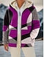 Naisten Talvitakki Pidä lämpimänä Vetoketju Tasku Väripaletti Painettu Muoti Vapaa-aika Geometrinen Katu Kausaliteetti Lyhyt Hupullinen Normaali Pitkähihainen Päällysvaatteet Sininen Rubiini Purppura