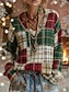 Naisten Neulos Pusero Vintage Muoti Katutyyli Skottiruutukuvio Joustin V kaula-aukko Ylisuuret Kudottu Painettu Pitkähihainen Tavalliset topit Neuloa Joulu ulko- Päivittäin Apila Kevät Syksy