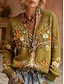 Naisten Neulos Pusero Vintage Muoti Katutyyli Kukka Joustin V kaula-aukko Ylisuuret Kudottu Painettu Pitkähihainen Tavalliset topit Neuloa ulko- Päivittäin Keltainen Kevät Syksy