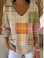 Naisten Neulos Pusero Vintage Muoti Katutyyli Kuvitettu Geometrinen Skottiruutukuvio Joustin V kaula-aukko Ylisuuret Kudottu Painettu Pitkähihainen Tavalliset topit Neuloa ulko- Päivittäin Pyhäpäivä